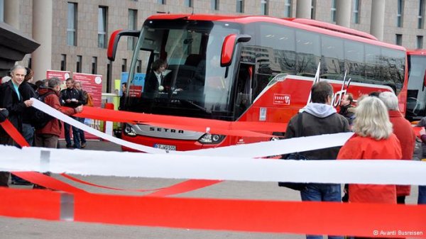 آژانس مسافرتی "آوانتی" (Avanti-Reisen) در شهر فرایبورگ آلمان با در نظر گرفتن همین نکته در اقدامی منحصر به فرد روز ۸ آوریل (۱۹ فروردین) یک دستگاه اتوبوس را با ۱۸ مسافر راهی سفری به دور جهان کرد. این سفر۵۲ هزار کیلومتری ۹ ماه به طول میانجامد.