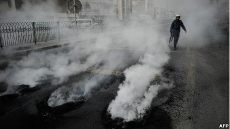 روز گذشته هم پلیس ضد شورش بحرین تلاش کرد با گاز اشک آور معترضان را که شعار"مسابقه شما یک جنایت است" و "نه به مسابقه فرمول یک" را سرداده بودند، متفرق کند.
