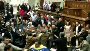 بین شماری از اعضای احزاب دولتی و مخالف در پارلمان ونزوئلا درگیری روی داده و چند تن را زخمی کرده است.