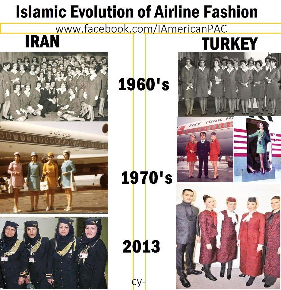 اگر مهمانداران زن ایرانی سال 2013 را با دهه های 60 و 70 میلادی مقایسه بکنیم چقدر تفاوت وجود دارد مهماندارها در دهه های 60 و 70 قلمی و خوش ترکیب و خوشگل و مامانی بودند اما در سال 2013 همگی چاق و بدترکیب و زشت هستند!!! به همین علته که بیشتر هواپیماهای ایرانی سقوط می کنند!!