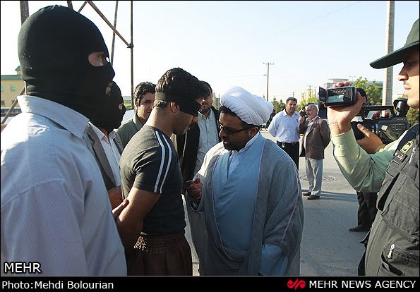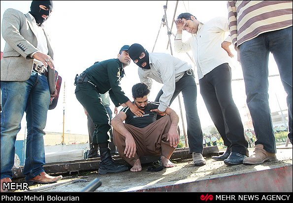چه فیلمی هستن مردم ایران . اول این چه وضع دستبند زدن بوده.انگار میدونستن که وسط اعدام میخوان ببخشنش. چون نه پاشو بستن و دستشو خوب دستبند نزدن که باز شده میبینین. . اما این ادم با این قیافه که من میبینم فردا که از زندان ازاد بشه میره برای انتقام همین چند لحظه اعدام شدنش پدرو مادر اون سرباز که کشته هم میکشه.