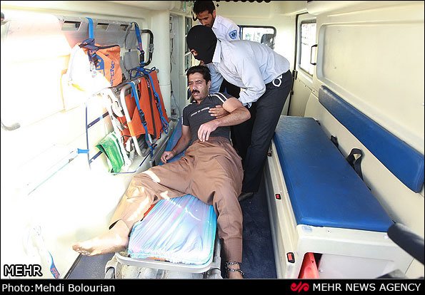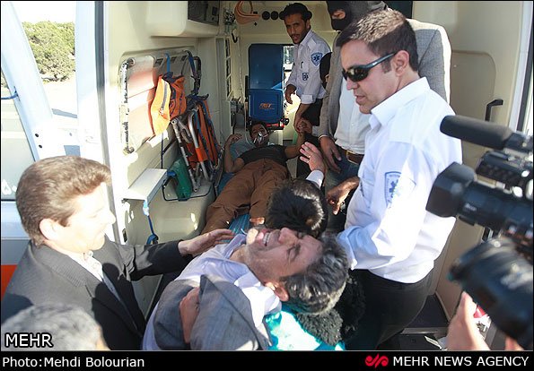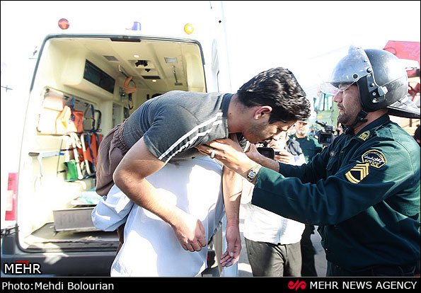 قاتل عامل شهادت سرباز نیروی انتظامی پس از اینکه از مرگ حتمی نجات پیدا کرد به بیرون از صحنه اعدام برده شد.