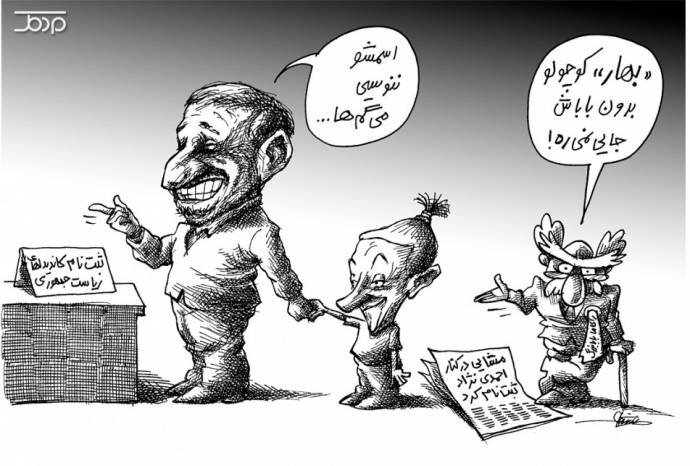 خداوکیلى این کاریکاتوره ؟ اصلا همه حرفای من اشتباه و شما درست میگید ولی پرس که از مخالفاى سر سخته همیم یه لحظه مخالفتو بذار کنار بگو خدایى هنری تو این میبینی ؟ وژدانن این کاریکاتوره یا یه آدمی که عقده کاریکاتوریست شدن داره یه چرتو پرت نوشته با عکس تکراری ؟ منتظر جواب دوستان هستم صداقتتونو ببینم بالاخره باید یجوری به شماها اعتماد کرد دیگه آول از همه منتظر توام پرس فلوریدا، میدونینم که من مخالف سرسخته مشایى هستم