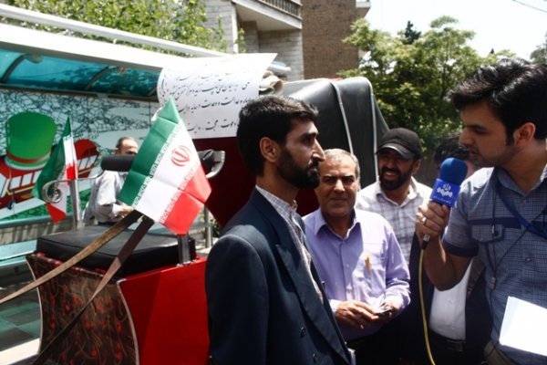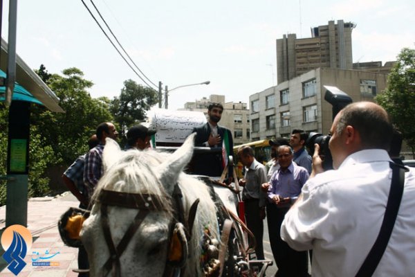 غلامرضا اسمعیلی از تهران برای نامزدی در انتخابات ریاست جمهوری با درشکه به وزارت کشور آمد.