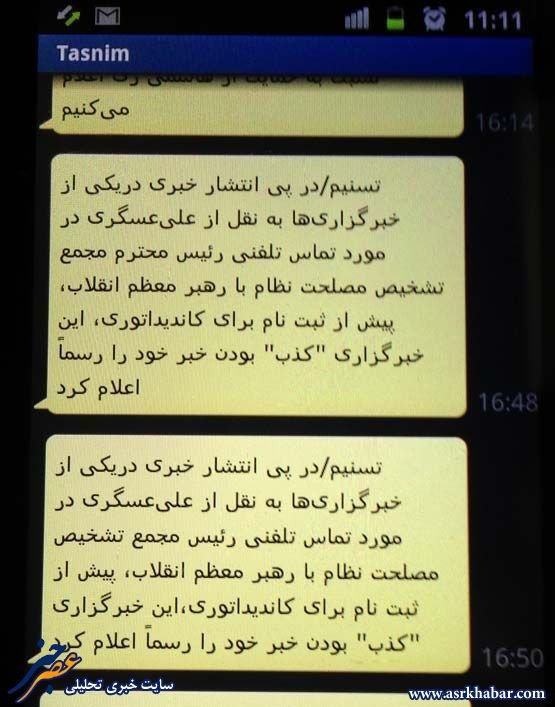 پیامک های ارسالی از سوی یک خبرگزاری داخلی کشور