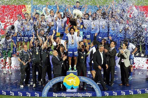 فرهاد مجیدی کاپیتان محبوب آبی ها را در حالی که جام قهرمانی استقلال را بالای سر برده