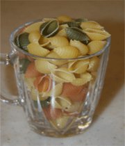 یک لیوان سس مایونز (حدود 180 گرم)، دو لیوان ماکارونی فرم دار (جمعاً معادل 200 گرم)
