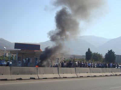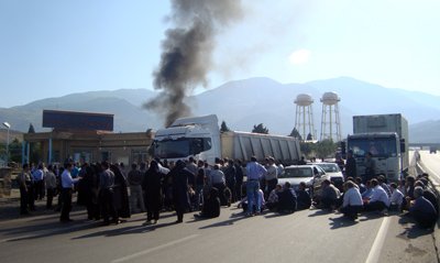 کارگران معترض در گیلان با آتش زدن لاستیک جاده رشتـقزوین را بستند