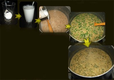 دو قاشق غذاخوری آرد برنج (جمعاً معادل 30 گرم)، یک کاسه ماست خوری جو پرک یا هشت قاشق غذاخوری (معادل صد گرم)