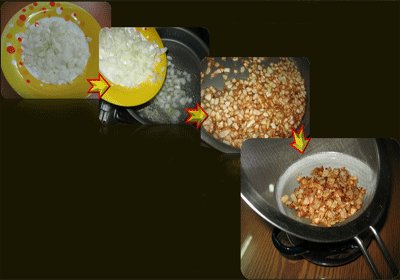دو عدد پیاز خرد شده را در یک فنجان روغن داغ شده میریزیم تا پیاز داغ با شعله زیاد سرخ و برشته شود. بعد از سرخ شدن، سریع پیاز داغ را در یک آبکش ریخته تا روغن آن جدا شود. پیاز داغ بدون روغن را در ماهیتابه برگردانده و آن را پهن میکنیم تا پیاز داغ خشک و برشته شود و در روغن باقیمانده از پیاز داغ، دو قاشق نعناع آسیاب شده میریزیم تا نعناع داغ درست شود.