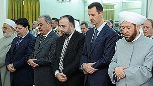 بشار اسد در نمازهای عید فطر و قربان، به شیوه اهل سنت نماز می خواند