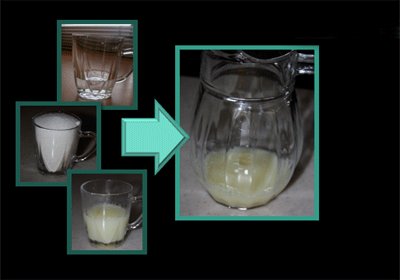 نصف لیوان آبلیمو، یک لیوان شکر و یک چهارم لیوان گلاب را با هم مخلوط میکنیم.