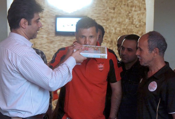 پس از امضای قرارداد محمد رویانیان شال پرسپولیس را بر گردن دایی انداخت که بلافاصله علی دایی آن شال را بر گردن رویانیان انداخت.