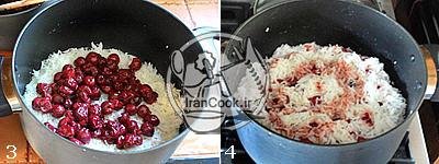 نکته ها : یک کاسه کوچک از آلبالو ها را کناری بگذارید تا در زمان سرو غذا روی برنج را با ان تزئین کنید ، برای برنج زعفرانی مقداری برنج سفید را با کمی زعفران دم شده و مقداری کره مخلوط کنید.