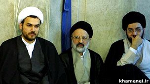 میثم خامنهای (راست) در کنار اصغر میرحجازی (وسط) و محمد جواد گلپایگانی (داماد آیتالله خامنهای)