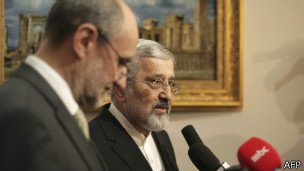 علی اصغر سلطانیه (راست) نماینده ایران در آژانس و هرمن ناکرتس بازرس ارشد این سازمان در آخرین دور گفتگوها