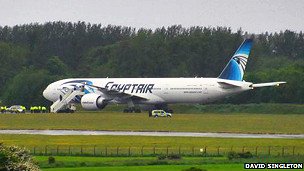 یک هواپیمای مسافربری مصری در مسیر قاهره - نیویورک پس از پیدا شدن یادداشتی مشکوک با تغییر مسیر در گلاسکو اسکاتلند فرود اضطراری کرد.