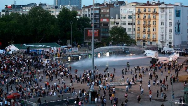 معترضان از سراسر کلانشهر استانبول به سوی میدان تقسیم سرازیر شدند، ولی میدان به محاصره نیروهای پلیس درآمده بود. خیابانهای اطراف میدان به صحنهی درگیریهای سخت میان معترضان و نیروهای پلیس بدل شد که همچنان ادامه دارد.