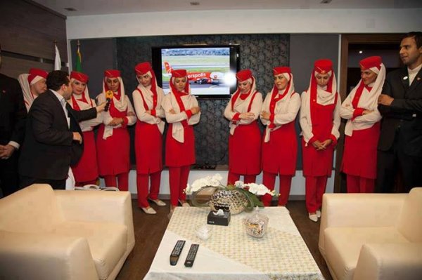 به مهماندارها قبل از عکس گرفتن گفته شده که سرشون رو بندازن پائین و به لنزِ دوربین نگاه نکنن...لطفا به منِ نا آگاه بگید که این چه معنی داره؟ تنها کسانی که در این عکس عرضِ وجود میتونن بکنند خلبان و اون شخصِ ریشو....