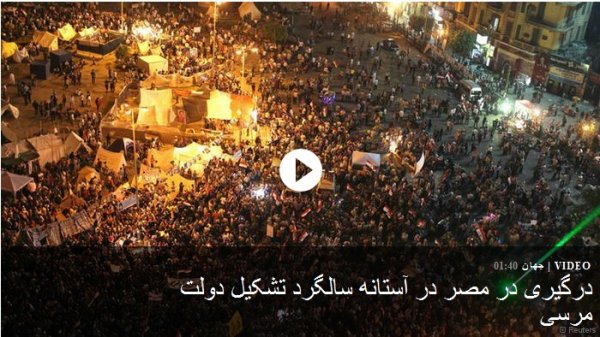 روز جمعه، ۲۸ ژوئن، میان موافقان و مخالفان محمد مرسی درگیریهای خونینی رخ داد. مخالفان مرسی معتقدند که او تنها به خواستههای گروه اخوانالمسلمین توجه نشان میدهد. ولی هواداران او میگویند مرسی رئیس جمهوری قانونی مصر است.