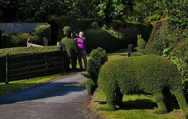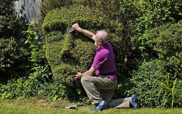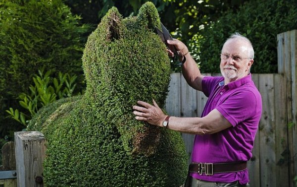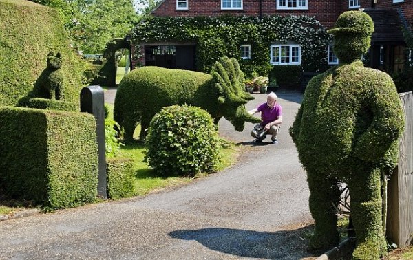 یک مرد ۷۰ ساله انگلیسی گیاهان کاشته شده در مقابل خانه اش را به شکلهای مختلف درآورده که پس از ۲۶ سال حالا تبدیل به یک نمایشگاه واقعی شده است. او درختها را به شکلهای مختلف از جمله گربه، دایناسور و خرگوش درآورده است.