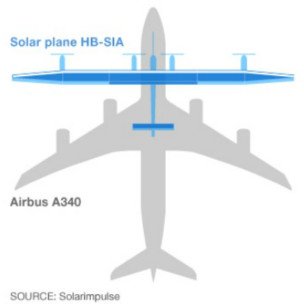 مقایسه ابعاد سولار ایمپالس با ایرباس
