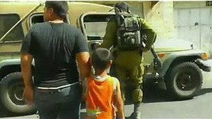 ارتش اسرائیل گفته که این پسر بچه با پرتاب سنگ، عابران را به خطر انداخته و سربازان تنها سعی کردند که او را به والدینش تحویل دهند.