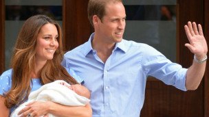 آنان عصر روز سهشنبه ۲۳ ژوئیه همراه یکدیگر و در حالی که پسر نوزاد خود را در آغوش داشتند، به بیرون از بیمارستان قدم گذاشتند و دوربینهای پرشمار رسانهها توانستند برای دقایقی از این عضو جدید خانواده سلطنتی بریتانیا تصویر بگیرند.