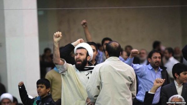 در روز ۲۲ بهمن پارسال عدهای با پرتاب مُهر نماز و کفش و نعلین مانع سخنرانی رییس مجلس ایران شدند.