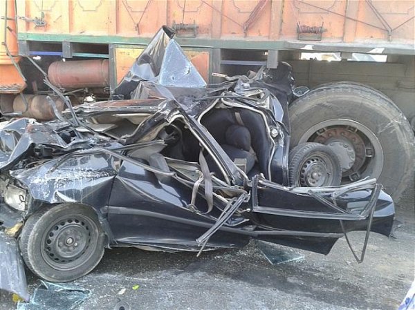 4نفر از اعضای یک خانواده که در یک حادثه شدید رانندگی در داخل خودروسواری و زیر چرخ های کامیون گرفتار شده بودند بطرز معجزه آسائی از مرگ حتمی نجات یافتند.