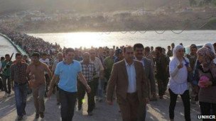 کمیساریای عالی سازمان ملل متحد می گوید که اولین گروه پناهجویان سوری حدود ۷۵۰ نفر بودند که قبل از ظهر روز پنج شنبه وارد کردستان شدند اما بعد از ظهر همان روز بین ۵ تا ۷ هزار نفر دیگر به آن ها پیوستند.