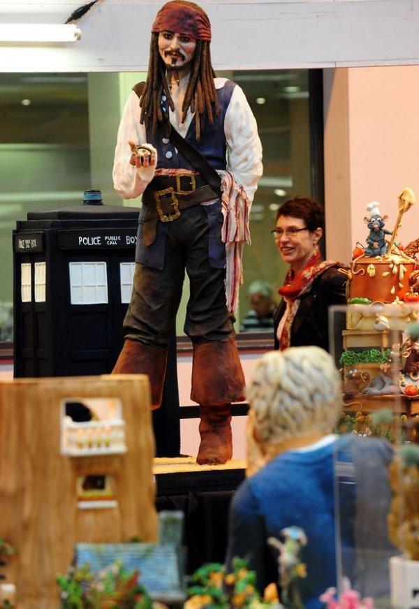 نانوای تازهکار بریتانیایی از جکاسپارو شخصیت فیلم سینمایی دزدان کارائیب کیکی در اندازه واقعی او تهیه کرده است.