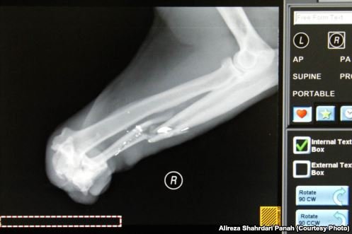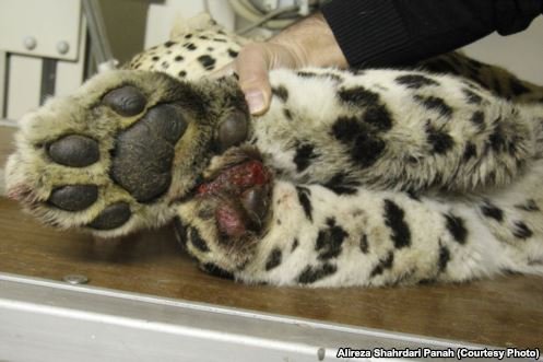 ایمان معماریان درباره وضعیت پلنگ وقتی به تهران رسید میگوید: «وقتی حیوان به تهران رسید، در قفسی بسیار نامناسب بود. بعد از بیهوشی و انجام رادیوگرافی مشخص شد که تعداد بسیار زیادی گلوله در بدن حیوان وجود دارد که به زمانهای مختلف بازمیگردند.»