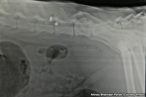 عکس رادیولوژی، تیراندازی و آسیب های کمر حیوان را نشان می دهد