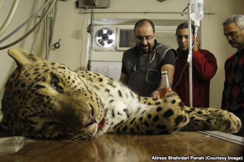 یک پلنگ نر ایرانی بزرگ (با نزدیک به یکصد کیلوگرم وزن) که در نزدیکی شهر تنکابن با مشکلات بسیار زیاد گرفته شده و برای مداوا به تهران منتقل شده بود، پس از آسیبهای شدیدی مانند قطع دست از مچ و قطع نخاع در پی شلیک، در انتظار انجام مرگ آسان به سر میبرد.