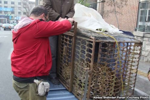 قفسهایی که برای انتقال حیوان از آنها استفاده میشود، استانداردهای خاصی دارند که حیوان نه تنها در صورت تقلا آسیب نبیند، که در صورت حرکت و ضربههای احتمالی ناشی از تحرک، در امان بماند. اما این حیوان گویا در قفسی آهنی معمولی که شاید برای نگهداری مرغ و خروس از آن استفاده میکنند، به تهران منتقل میشود.