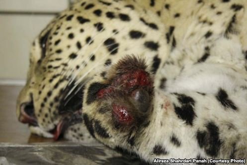 قطع دست، فلج دو پا و شکستن دو دندان نیش پلنگ ایرانی