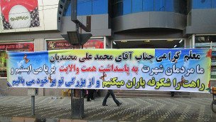تحسین این آموزگار به اینترنت محدود نمانده. از این عکس که در فیسبوک منتشر شده، به نظر میرسد این پیام تشکر از او در شهر نصب شده است.