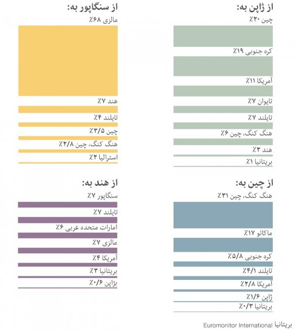 مسافران آسیایی به کدام کشورها می روند؟ (۲۰۱۲)