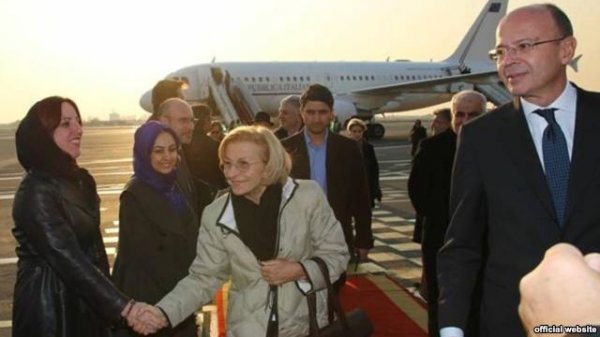 البته وزیر امور خارجه ایتالیا در دیدار با مقامهای ایرانی، روسری رنگی به سر داشت.