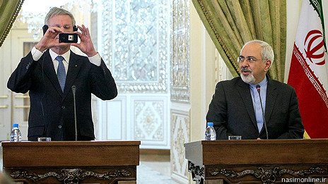 کارل بیلت این عکس را در کنفرانس مطبوعاتی مشترک با ظریف گرفت و در توییتر خودش منتشر کرد