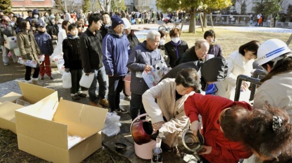 صف مردم ژاپن برای دریافت کمک، بعد از سونامی مرگباری که تخریب های بسیار گسترده برجای گذاشت و هزاران نفر را داغدار کرد