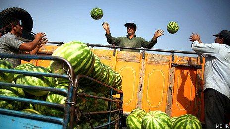 والا چیزی که من تو ایران دیدم کاملا خلاف این بوده. دقیقا همین عکس همه چیز رو اثبات میکنه. خدمت دوستان عزیز عرض کنم که ایران تنها کشوری تو دنیا هست که هندونه درسته میگیرن میخورن الان تو همین روسیه ملت ۱/۴ هندونه میگیرن خوشحال هم هستن. بقیه کشورا هم همین جور. والا چیزی که تو ایران مردم کم کسر ندران مسائل غذایی هست. اینو دیگه خدایی نمیشه قبول کرد.