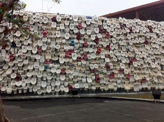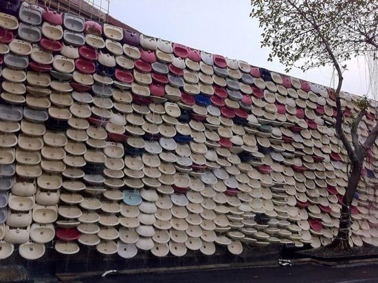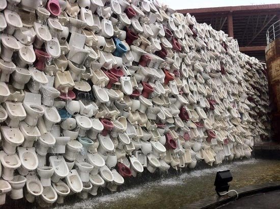 در Foshan که یکی از شهرهای چین است هنر عمومی عجیب و غریبی در خیابان ساخته شده. در این شهرستان یک دیوار به طول 100 متر با 10 هزار کاسه توالت تزیین شده و آبشاری از آنها پایین می آید.این آبنمای عجیب قبل از اینکه به عنوان یک قطعه از هنر های عمومی در خیابان های Foshan نصب شود ، در اصل برای نمایشگاه محصولات چینی در سال 2009 ساخته شده بود.