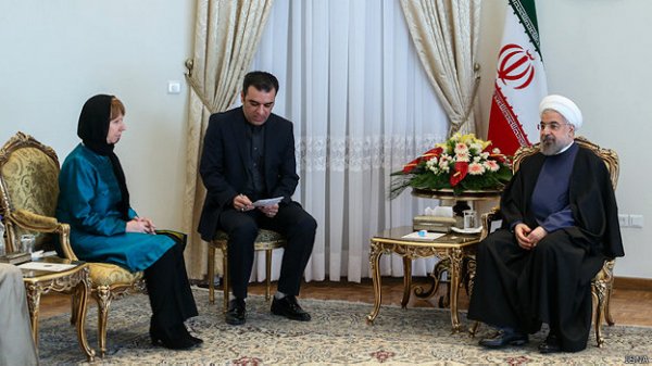 وبسایت رسمی ریاست جمهوری ایران نوشته که خانم اشتون در دیدار با آقای روحانی گفته است: "با پیام حسن نیت ۲۸ کشور اروپایی که نماینده آنها هستم خدمت شما رسیدهام، این نخستین فرصتی است که در خصوص مسألهای غیر از موضوع هستهای با مقامات ایران گفت و گو میکنم و این آغازی برای توسعه همکاریها میان ایران و اتحادیه اروپایی است."