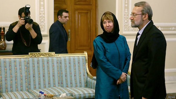 کاترین اشتون با علی لاریجانی، رئیس مجلس ایران هم ملاقات کرده است.