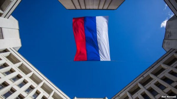 پرچم روسیه که بر فراز پارلمان محلی کریمه به اهتزاز در آمده است.