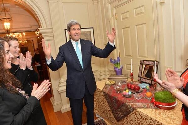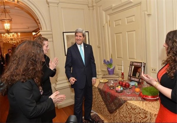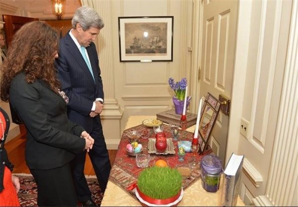 وزیر خارجه آمریکا در پیام خود به مناسبت عید نوروز گفته بود: "من مفتخرم که در آرزوی داشتن نوروزی شاد، سلامت و با کامیابی برای مردم ایران و همه کسانی که در سرتاسر دنیا - از آسیای شرقی تا ناحیه خلیج فارس – آن را جشن می گیرند به پرزیدنت اوباما می پیوندم. خانواده خود من امروز به خاطر حضور و مهر ایرانی-آمریکاییان قویتر است و من به ارتباطات خانوادگی ای که ما آمریکاییان با ایران و مردمانش داریم افتخار می کنم."