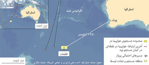جستجو در منطقه ای وسیع در این بخش از اقیانوس هند در غرب استرالیا در چند روز گذشته ادامه داشته اما هنوز به نتیجه نرسیده است.