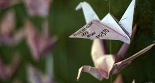 یک کاردستی کاغذی (اوریگامی) همراه با دعا برای سرنشینان MH370 در یک مرکز خرید در کوالالامپور